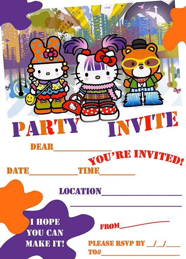 You have three, free, printable Hello Kitty Harujuku party invites to choose from - so choose the one you like best and print however many you need - for six guests, eight guests or more...they're free!